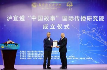 (图:成都外国语学院-泸宜遵“中国故事”国际传播研究院成立仪式)