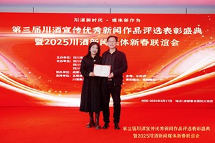 2025年2月27日,在成都举行的第三届川酒宣传优秀新闻作品评选颁奖晚宴圆满落幕。晚宴现场,四川省省委宣传部新闻处处长张文鹏,四川省委省政府决策咨询委副主任、四川省酒业协会副会长焦伟侠,四川省委省政府决策咨询委副主任、成都市社科联主席、四川省酒类流通协会名誉会长李后强,四川省新闻出版局原局长李正培,四川省人大原常委、港澳台外侨委主任秦琳,四川省对外经济合作促进会顾问李子渝,四川省政协办公厅经济处处长杜荣生,四川省经济和信息化厅三级调研员梅家茂,四川省社科院智库处长石明等领导出席晚宴,与来自全国各地的媒体人、文化学者、酒业专家齐聚一堂,共同见证了这一川酒文化传播的年度盛事。成都外国语学院科研处处长、成都外国语学院-泸宜遵“中国故事”国际传播研究院副院长何晶晶副教授,国家一级品酒师、高级记者、成都外国语学院-泸宜遵“中国故事”国际传播研究院执行院长徐雅玲副教授带领国际商学院学生参加本次活动。