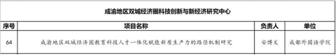 我校1项目获批成渝地区双城经济圈科技创新与新经济研究中心立项