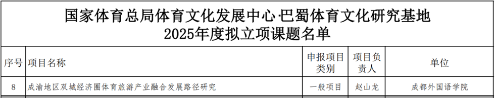 我校1课题获批巴蜀体育文化研究基地2025年度课题立项