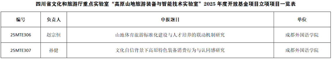 我校2课题获批高原山地旅游装备与智能技术四川省文化和旅游厅重点实验室2025年度开放基金项目立项